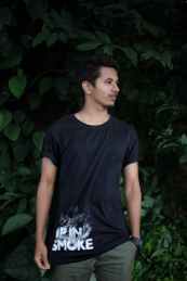 man standing beside green leaf tree