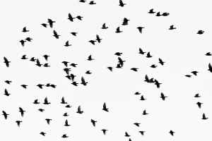 low angle photography of flock of flying birds