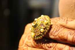 person wearing gold colored ring