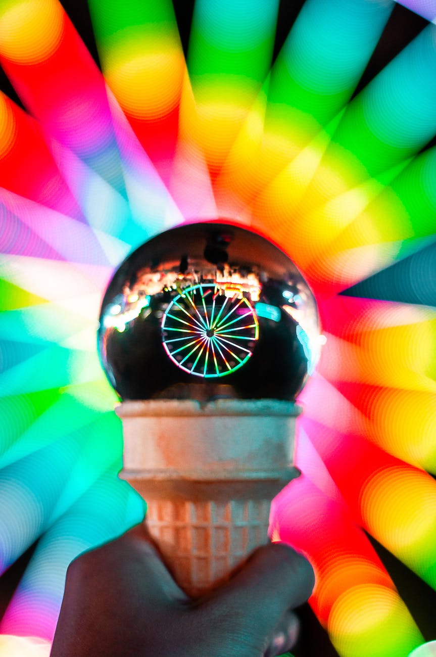 person holding ice cream cone with crystal ball