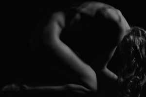 grayscale photo of naked person kneeling