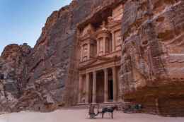horse with trailer in front of petra