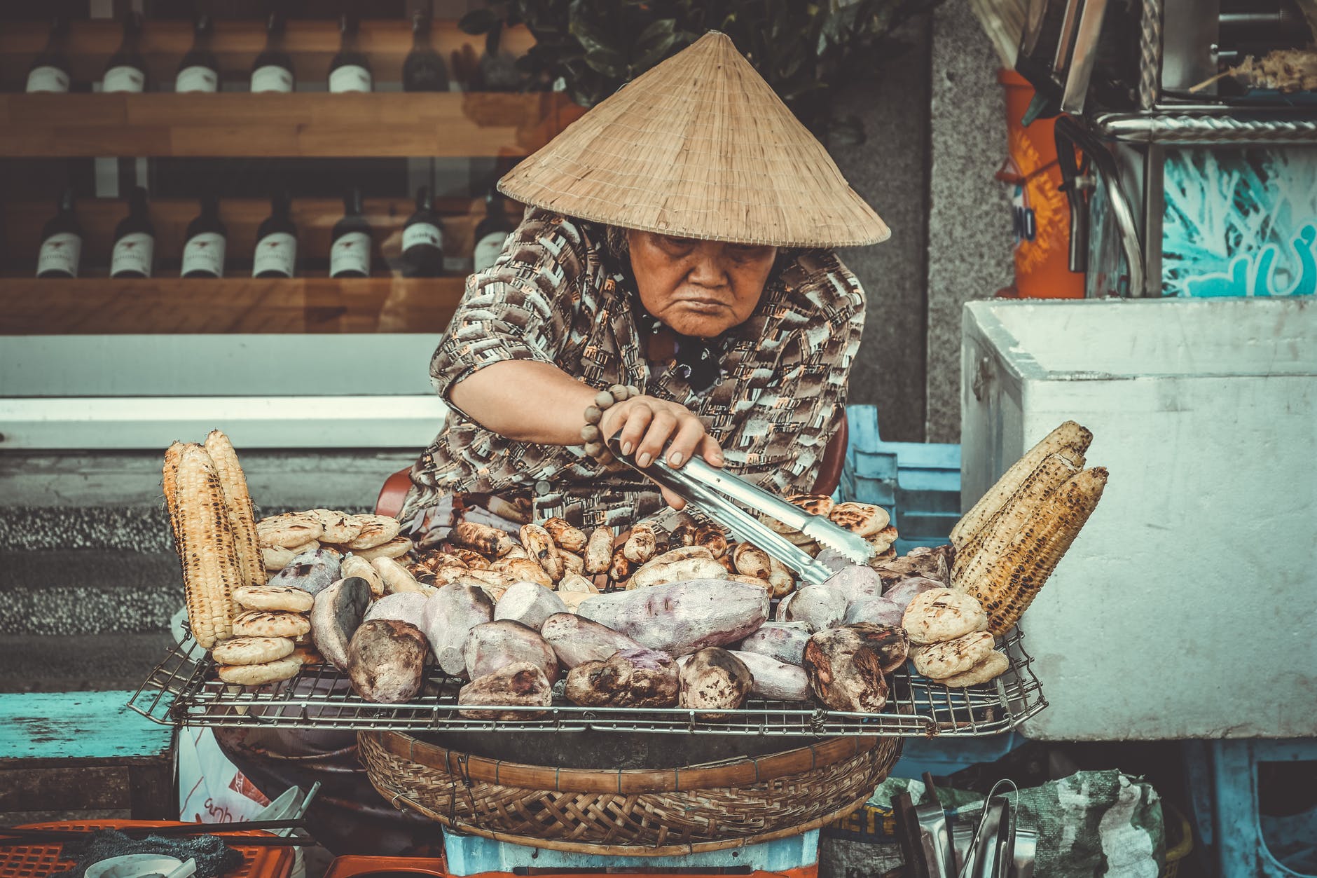 woman selling grilled root crops