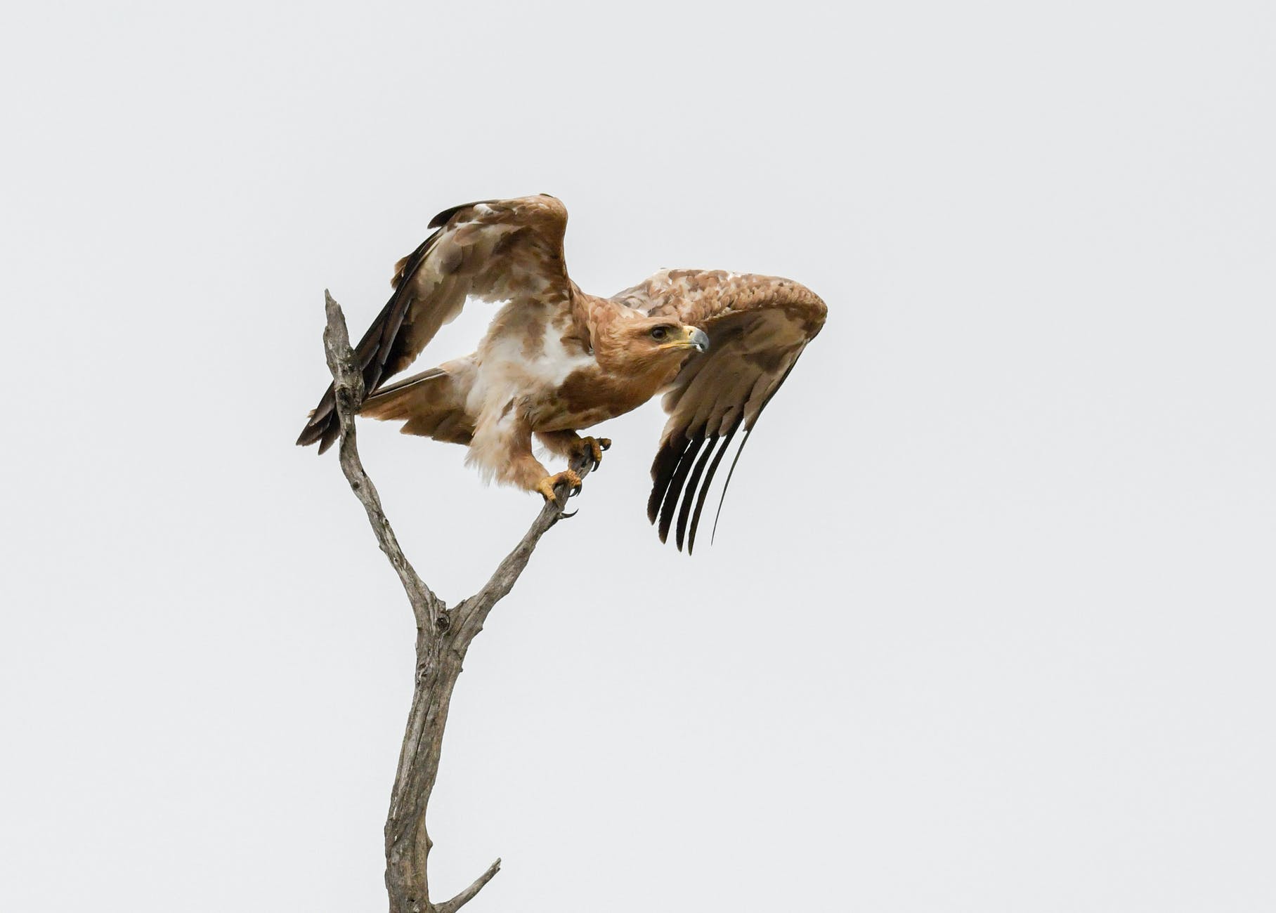 brown and white hawk on tree branch