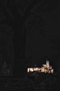 brown castle under a starry sky