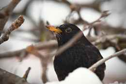 photo of perched common blackbird