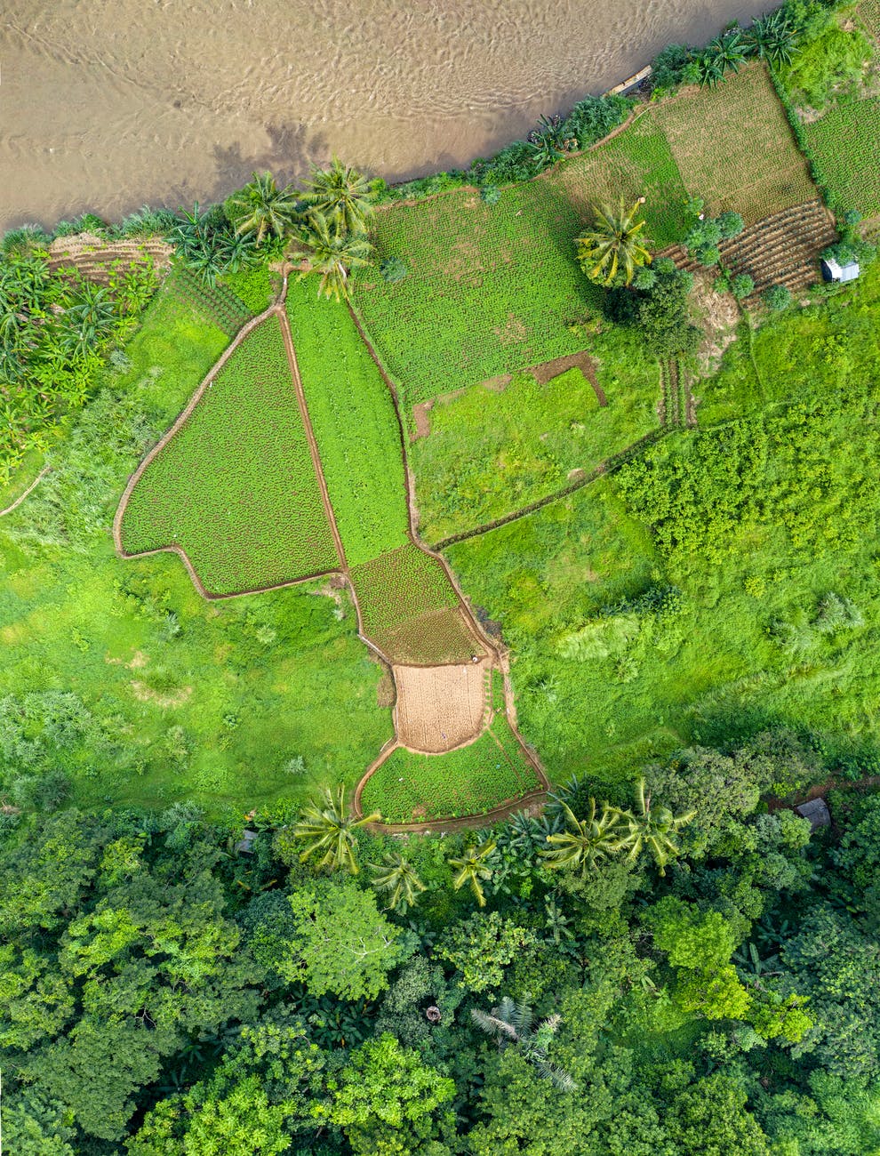 bird s eye view of green farmland landscape