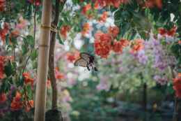 black butterfly preaching on peach flower