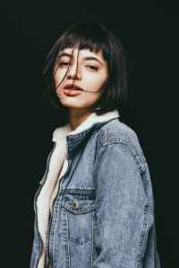 woman standing while wearing blue chambray jacket