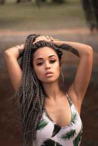 woman wearing white and green palm tree leaf themed haltered tops putting both hand on head May 11, 2020