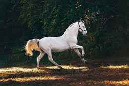 white coated horse running