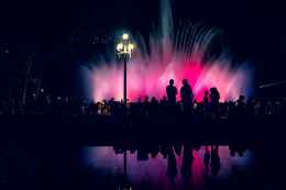 silhouette of people near fountain