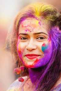 close up photo of woman with face paint