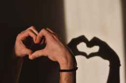 person doing heart hand gesture