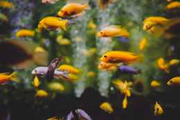 shallow focus photography of school of fish