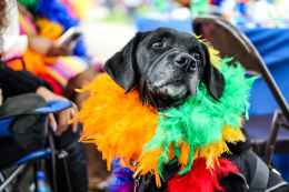 black dog wearing fur decor