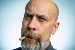 close up photography of a bearded man with a cigarette in his mouth