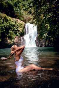 photo of woman sitting on river