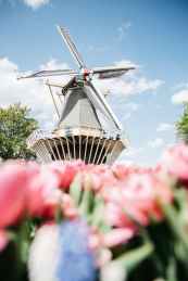 pink petaled flowers near wind turbine