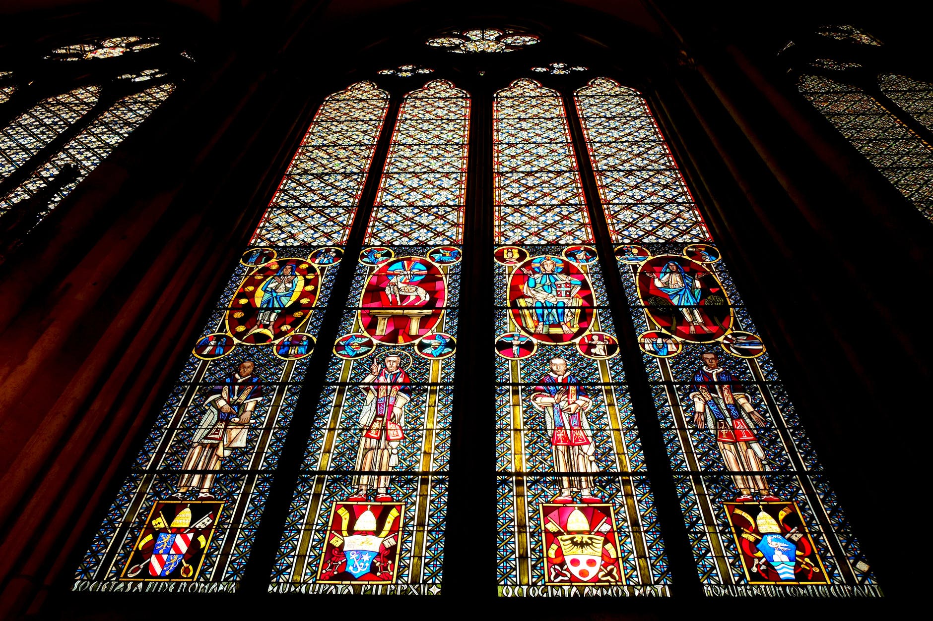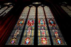 low angle view of stained glass window