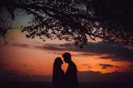photo of couple facing each other during golden hour