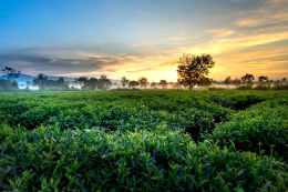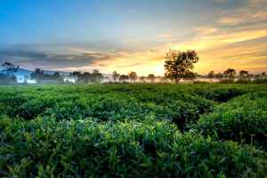 green tea farm during golden hour