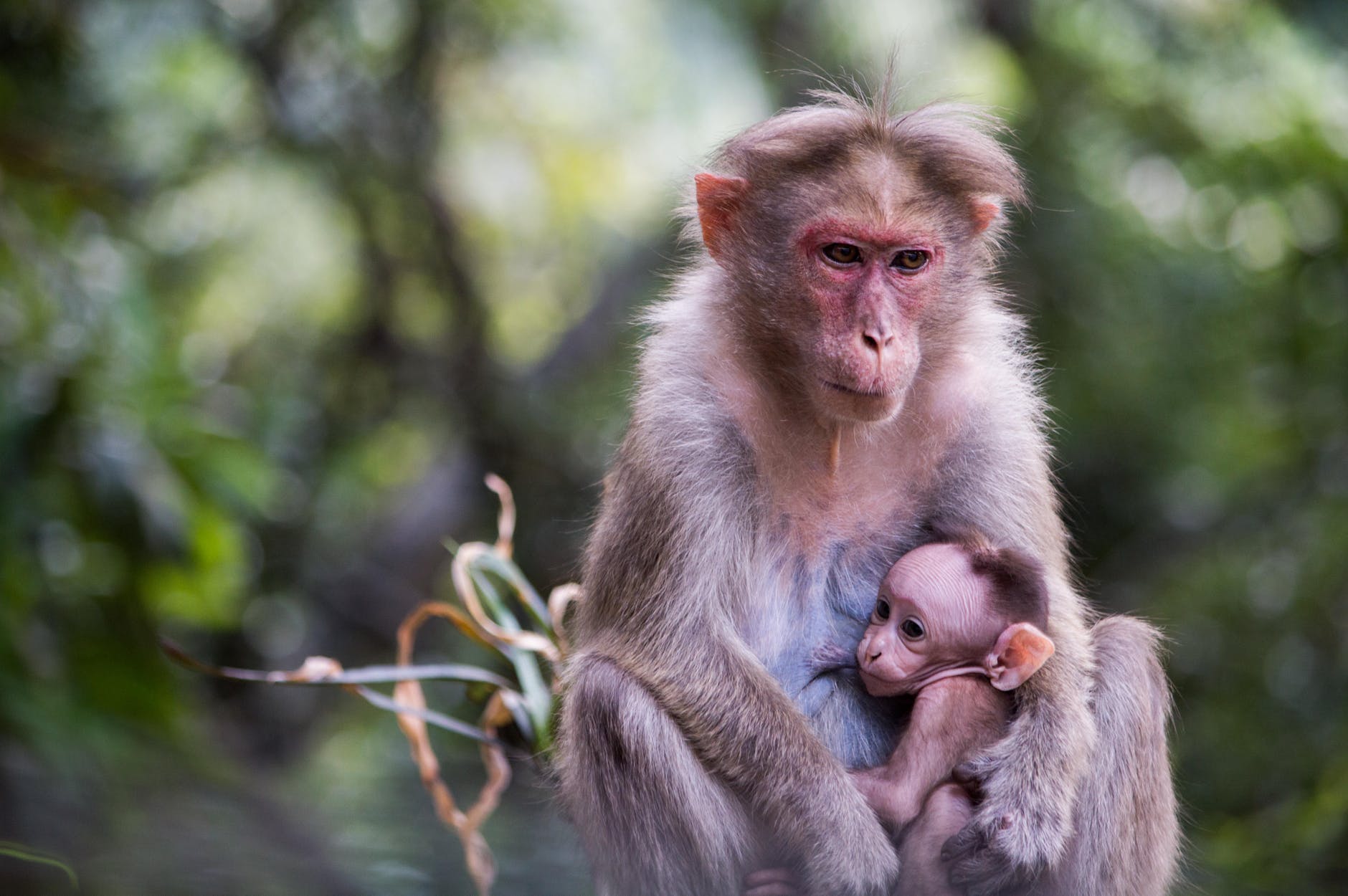 selective focus photo of macaque monkeys