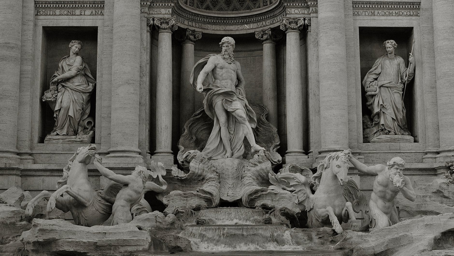 grayscale photo of sculptures