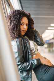 woman wearing gray jacket
