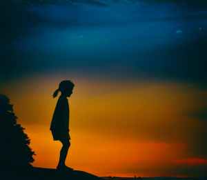silhouette of girl during night time painting