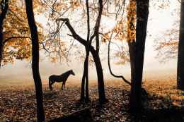 horse near trees
