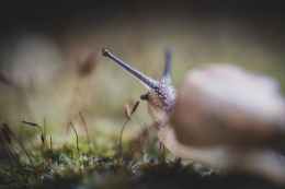 close up photo of snail crawling on grass