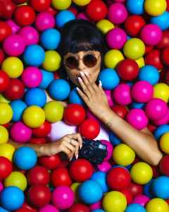 woman holding dslr camera while touching her lips