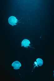 four blue jellyfish