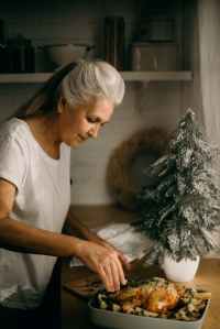 selective focus photography of standing woman in front of dish