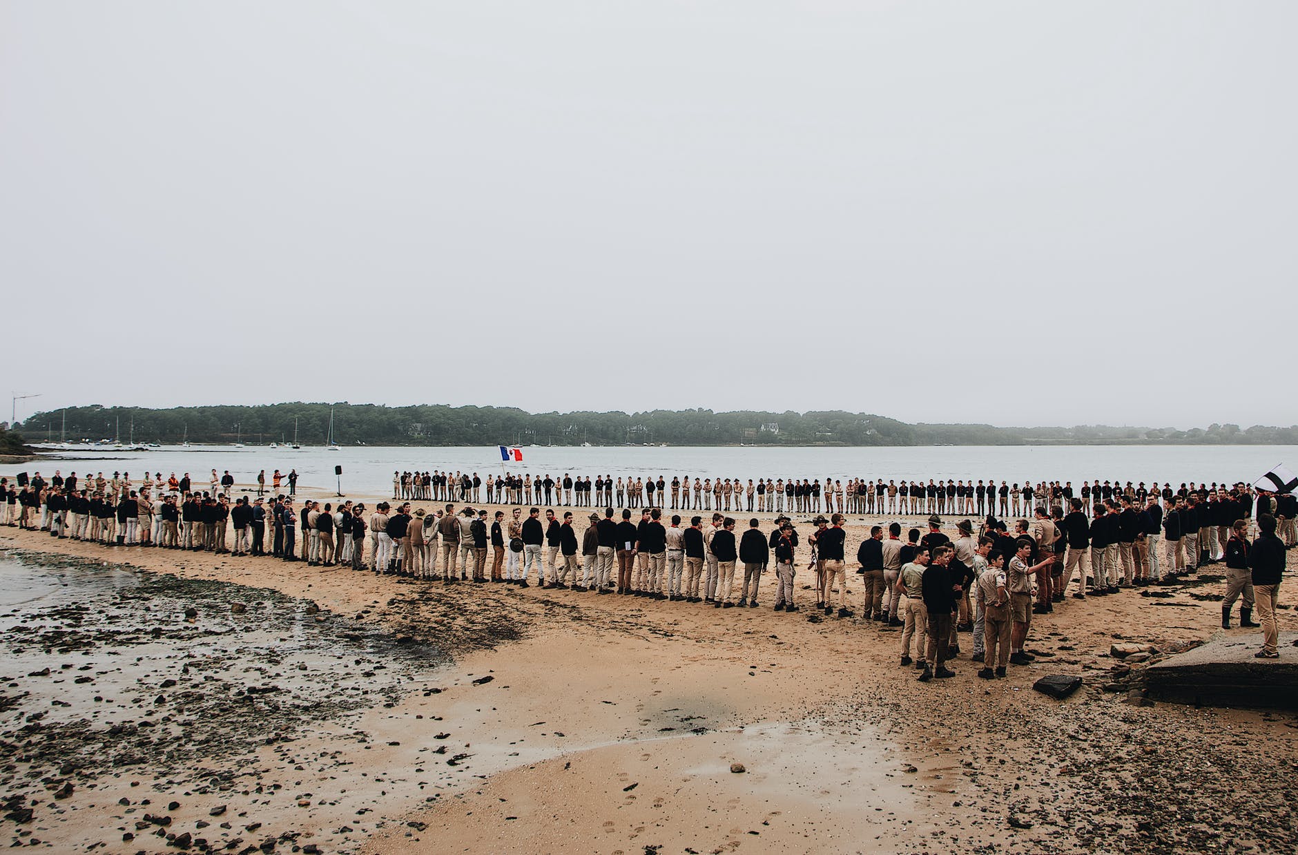 people standing beside body of water