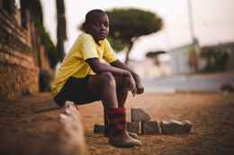 boy wearing yellow crew neck shirt and black short