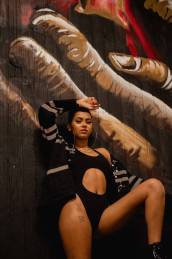 photo of woman standing by the graffiti wall