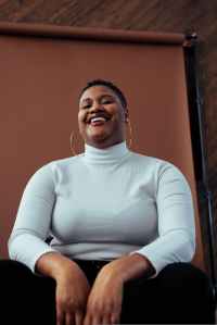 woman wearing white turtleneck sweater