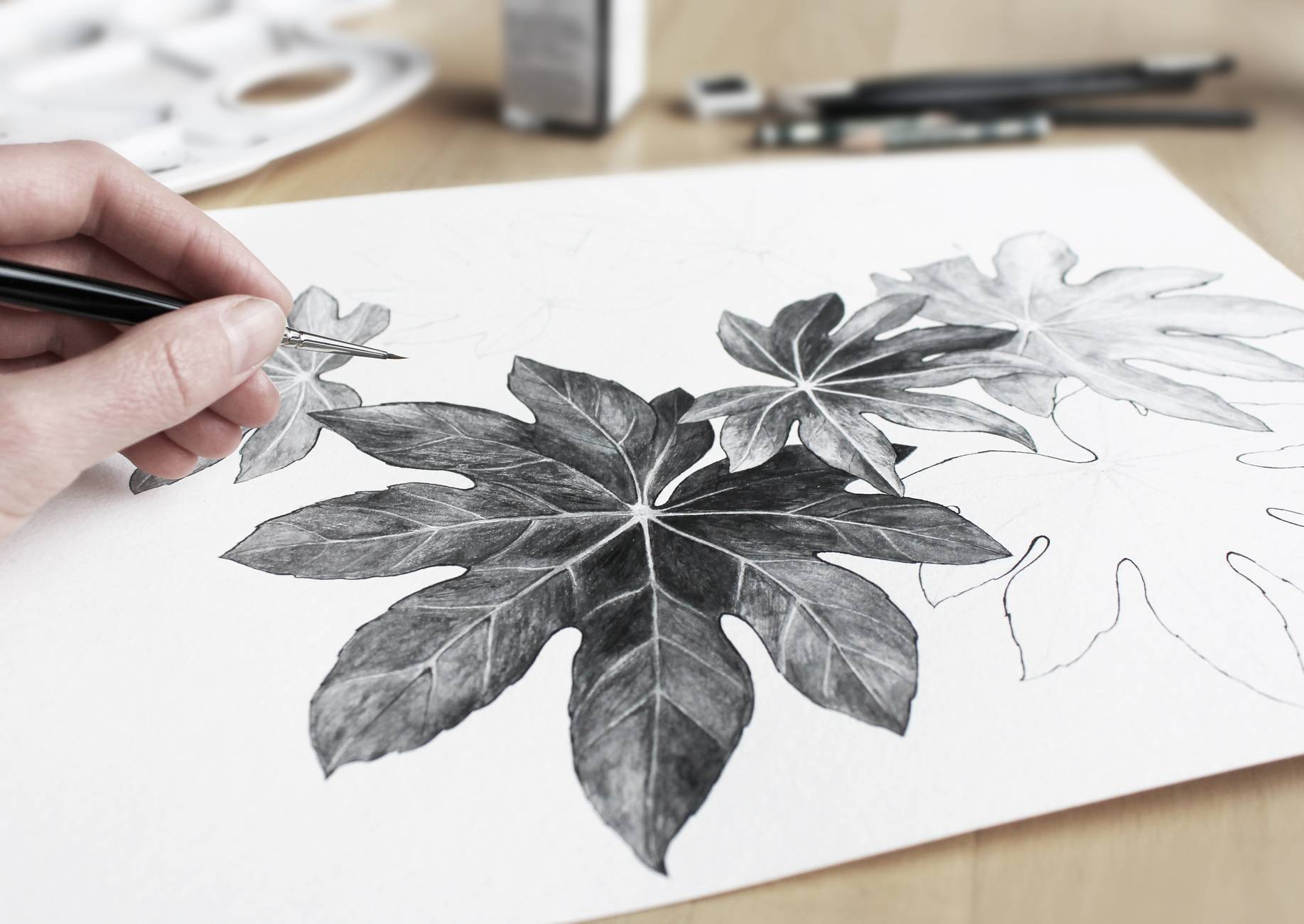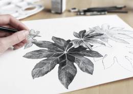 person drawing leaves using a pencil