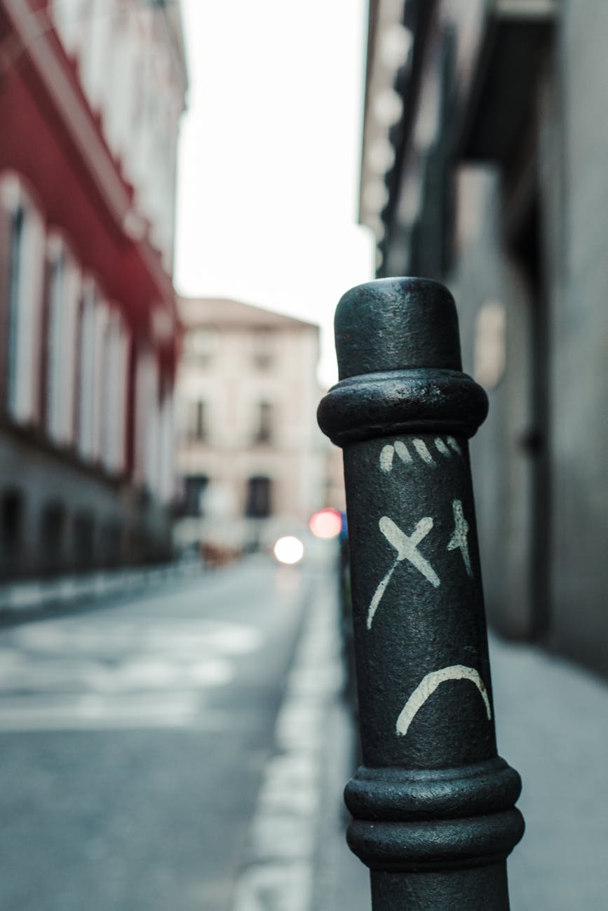 black metal post with sad face paint