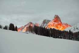 photo of pine trees across rocky mountains