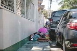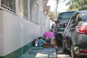 people lying on pavement beside parked vehicles