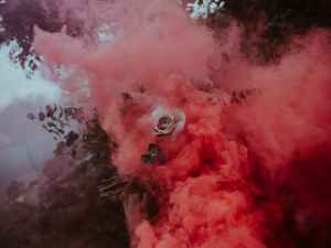 white rose and pink smoke