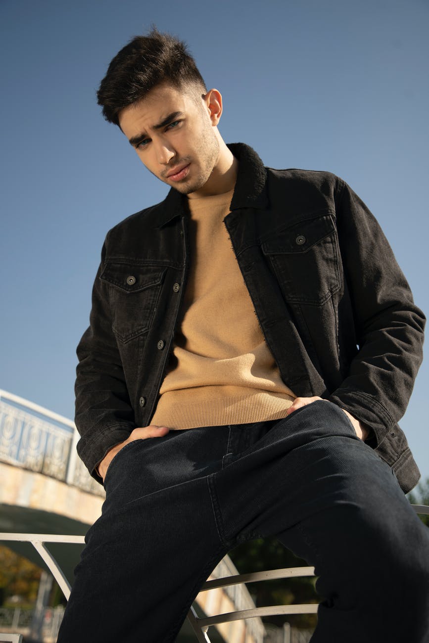 man in black jacket sitting on fence