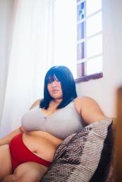 woman wearing gray bra and red underwear