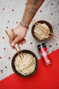 person holding brown wooden chopsticks