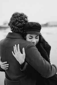 man hugging woman