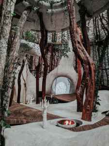 creeping plants on arched inside art galery