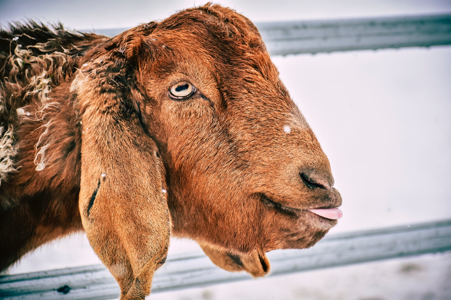 brown goat on snow covered ground